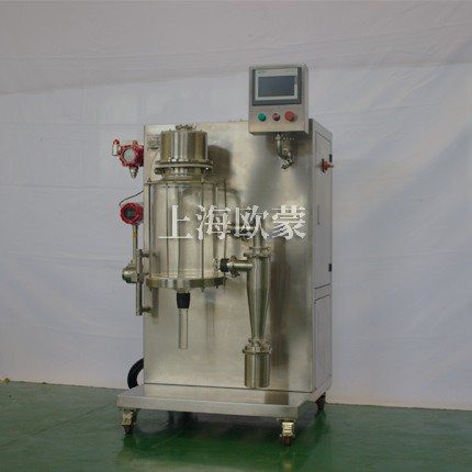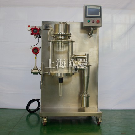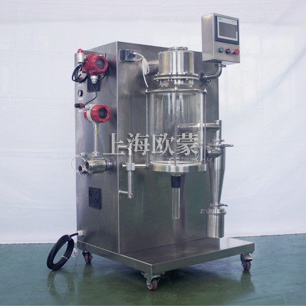 小型噴霧干燥機主要在科研階段對溶液或流體樣品進行噴霧干燥成粉或微小顆粒。其原理是通過霧化器將樣品霧化成微細霧滴,進入干燥室內進行熱交換,水份瞬間蒸發,固體經過旋風分離器進行回收,飽和氣體經過除塵器過濾后排空,本設備可應用于從試驗室到一般研究室的噴霧干燥作業,在食品醫藥化工行業均可良好的應用。